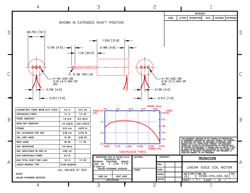 Continuous Force: 7.4 Oz (2.1 N), Stroke: 0.875 in (22.2 mm)