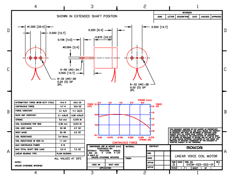 Continuous Force: 16.9 Oz (4.7 N), Stroke: 0.375 in (9.5 mm)