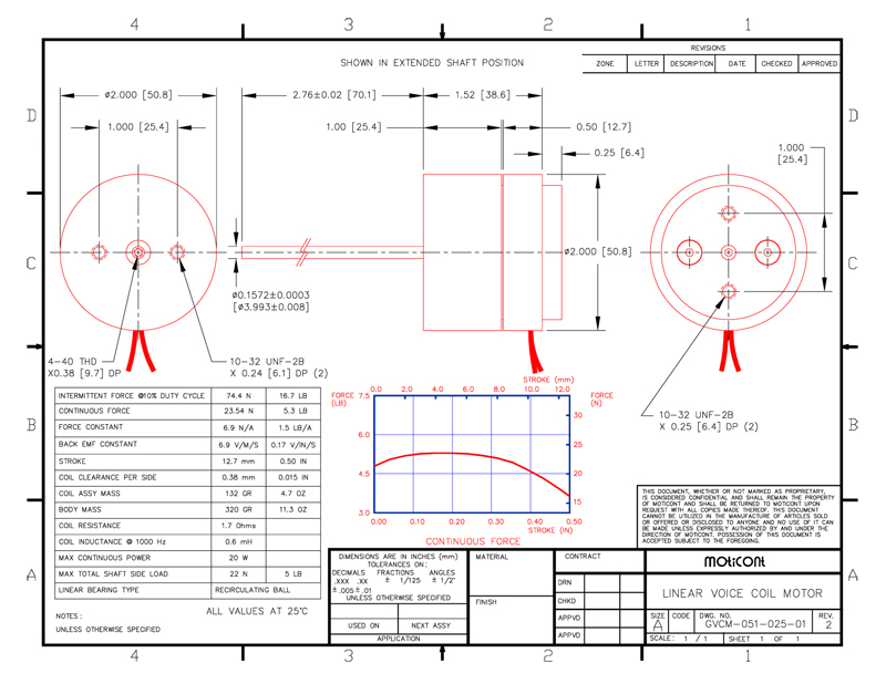 The GVCM-051-025-01VAC Linear Voice Coil Motor features: High acceleration/deceleration, high speed, high reliability, zero backlash, high accuracy, high repeatability, and a 0.5 inch (12.7 mm) stroke length!.
