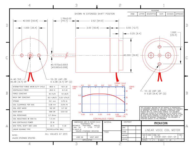 Force: 6.3 lb (28.0 N), Stroke: 0.75 in (19.1 mm)
