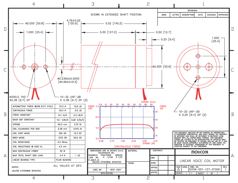 lb (22.2 N) continuous force and 15.8 lb (70.3N) of peak force in either