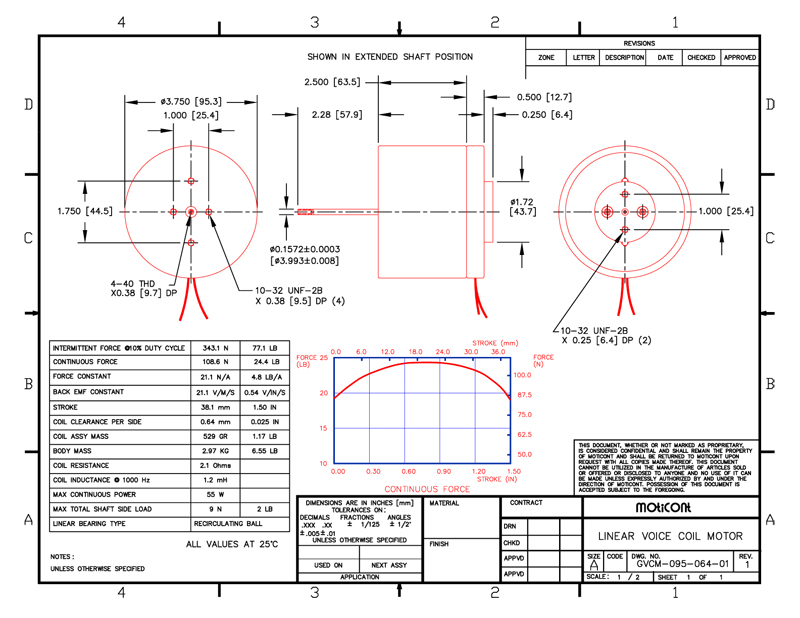 of continuous force and 77.1 lbs. (343 N) of peak force at a 10% duty cycle.