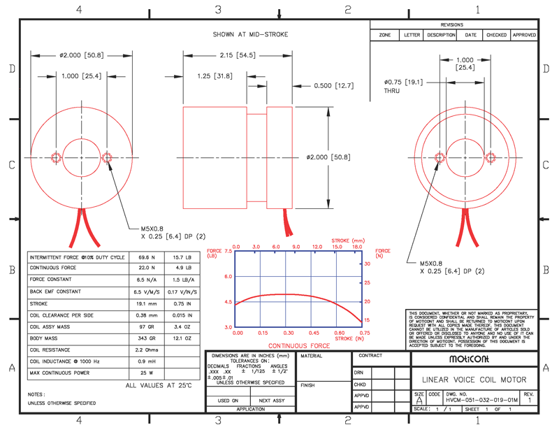 | Metric Model # | Stroke | Continuous Force | Intermittent Force @ 10% Duty Cycle | Housing Length | Through Hole Dia. | |||||