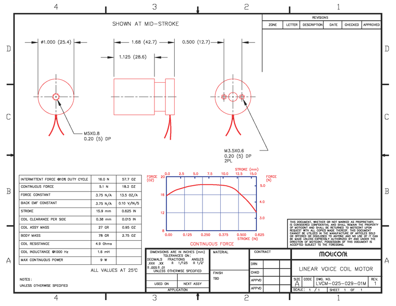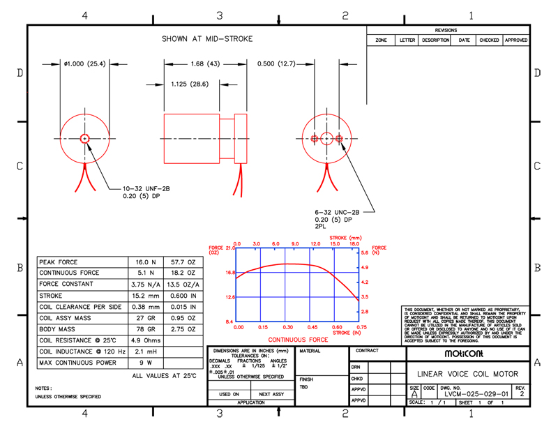 LVCM-025-029-01VAC DC motor has a stroke length of 0.625 in. (15.9 mm) a mid-stroke